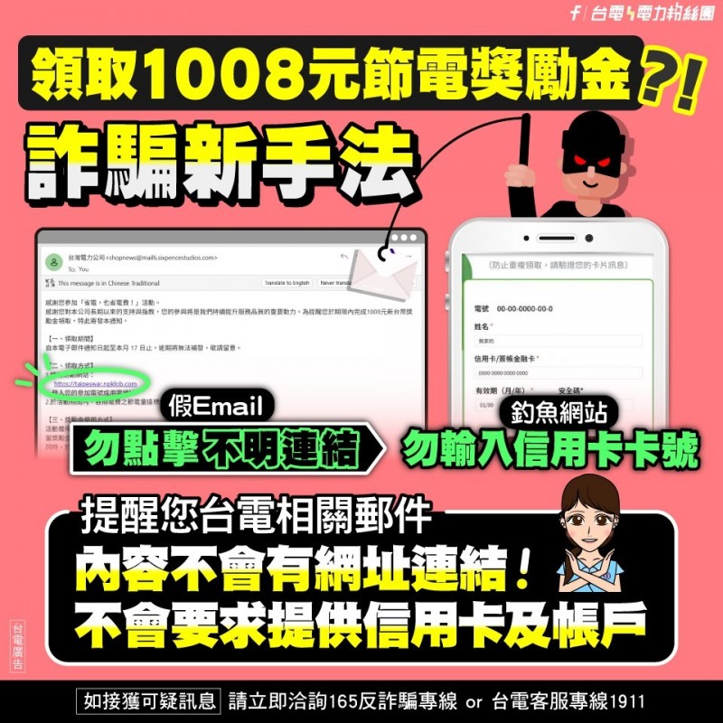 登錄領取1008元節電獎勵金是假的