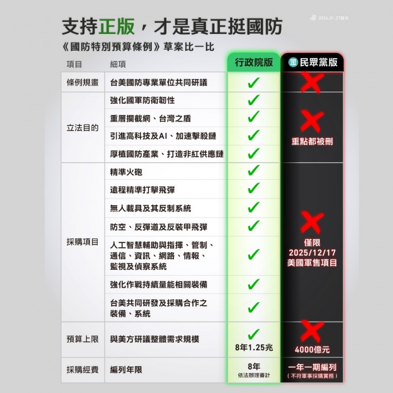民眾黨自提版本的《國防特別預算條例》出了什麼問題?用1分鐘告訴你!