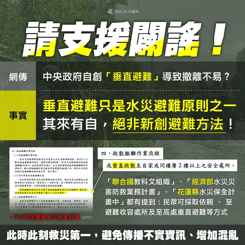 因應花蓮馬太鞍溪堰塞湖溢流,有誤傳「垂直避難」是臨時新方法,但事實上,它並非新創!