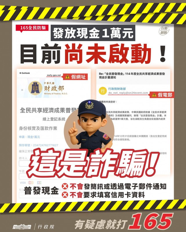 發放現金1萬元目前尚未啟動!小心詐騙!