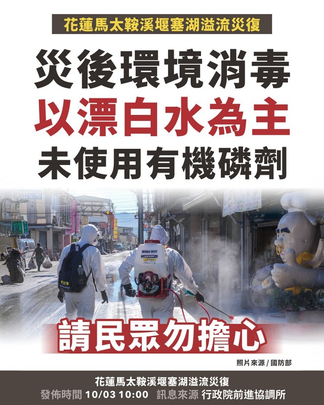 澄清說明|花蓮馬太鞍環境消毒以漂白水為主