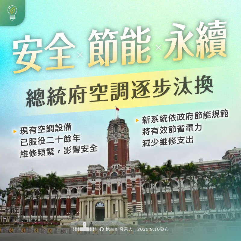 基於 安全 × 節能 × 永續 總統府空調逐步汰換