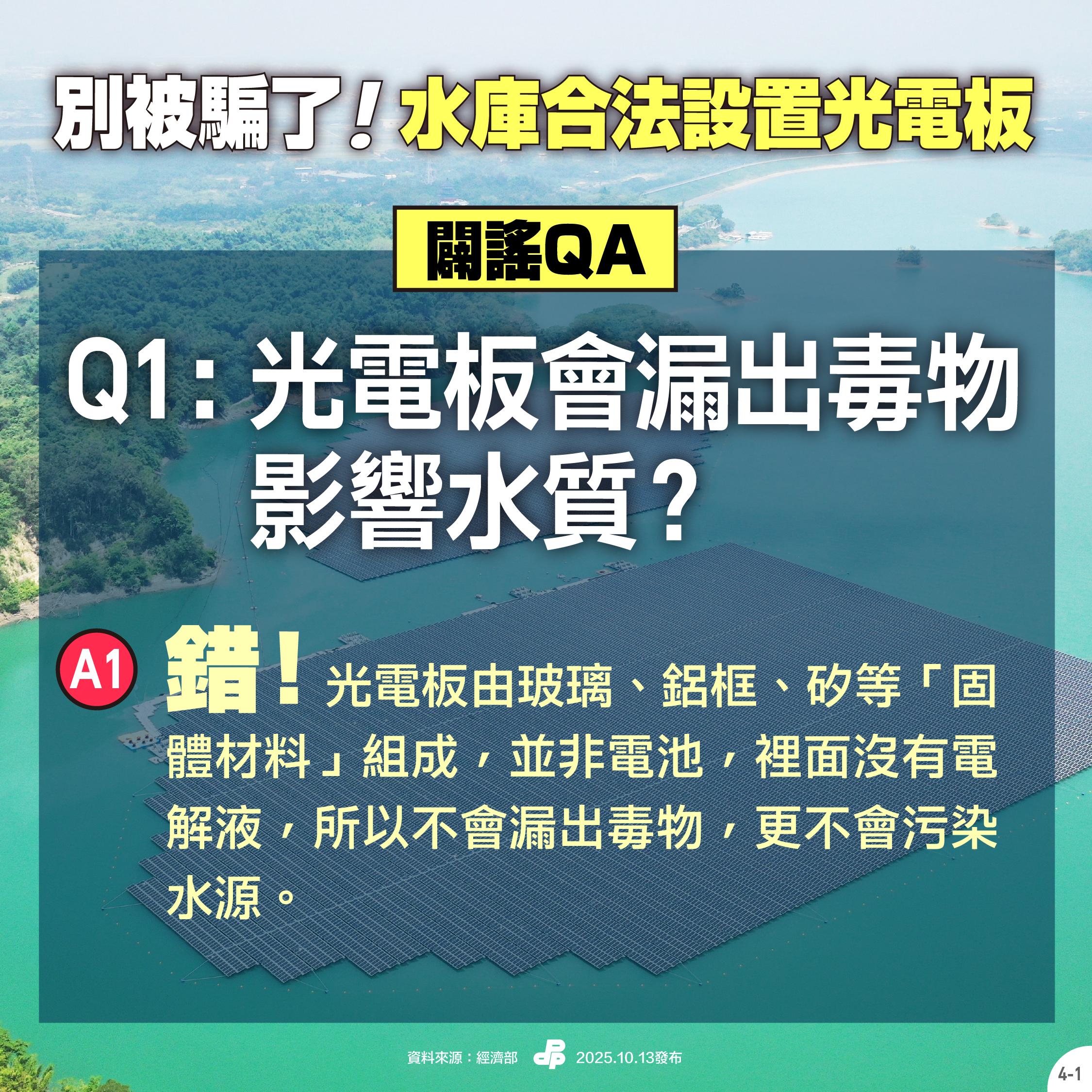 我們實際查證,許多說法都經不起驗證。從 #光電板材料組成、水質監測,到國際案例與法規依據,都有明確數據和規範,都是合法又安全的能源利用方式,並非外界謠傳的「亂設、亂蓋」。以下整理常見4個疑問和解答: