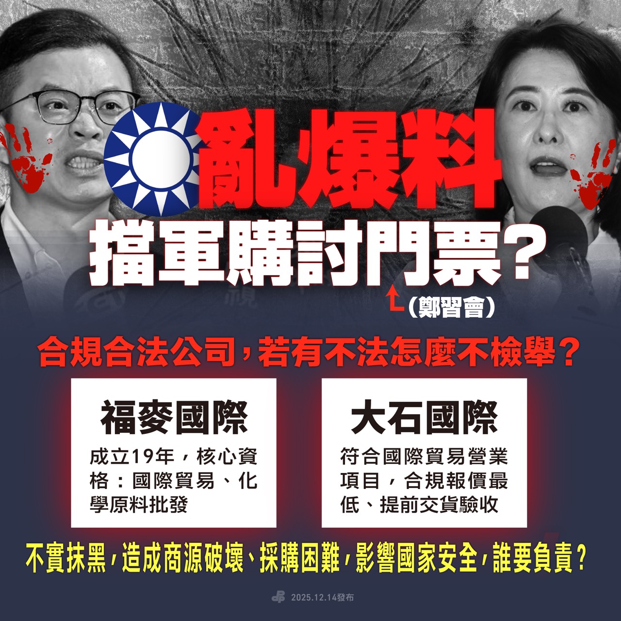 國民黨透過放話、抹黑,打擊國防部與合法業者,更為中國製造施壓的機會,很好玩嗎?商源破壞、採購困難,影響國家安全,誰要負責?