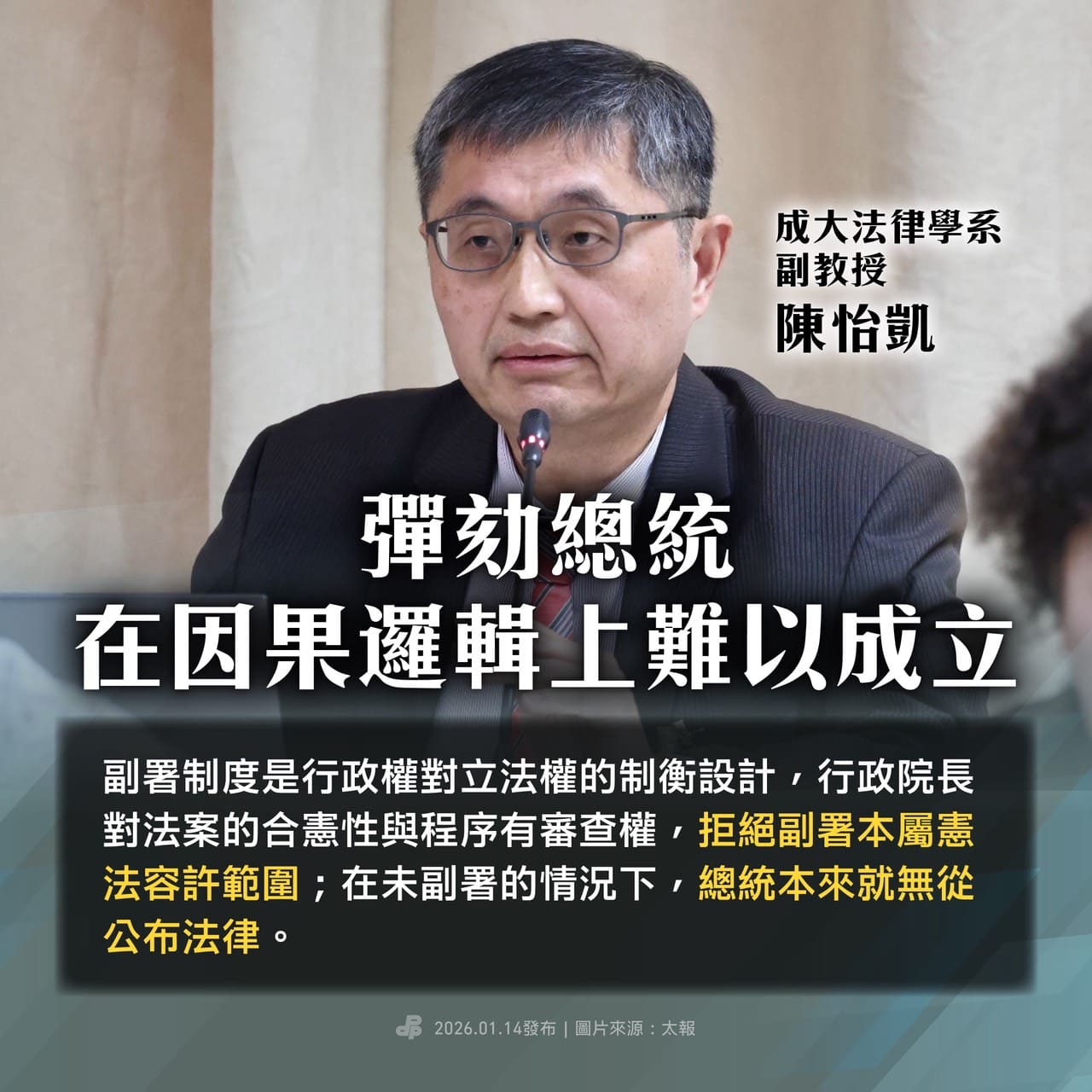 #陳怡凱 副教授:彈劾總統在因果邏輯上難以成立