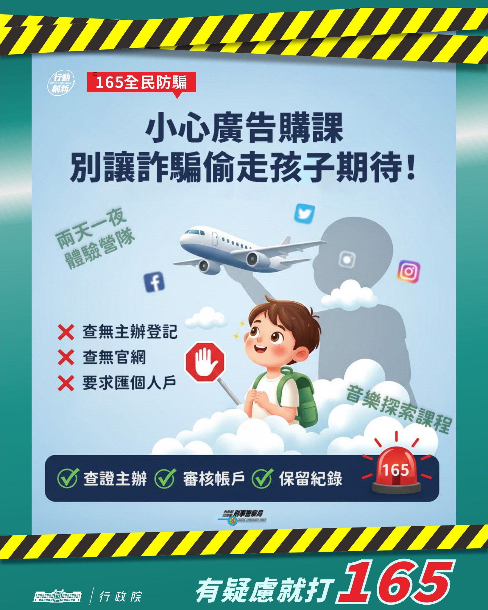 隨著寒假到來,近期出現不肖人士假借「兩天一夜體驗營」及「音樂探索課程」等廣告名義,利用家長對孩子學習成長的期待,誘導報名匯款,實際上卻是詐騙!