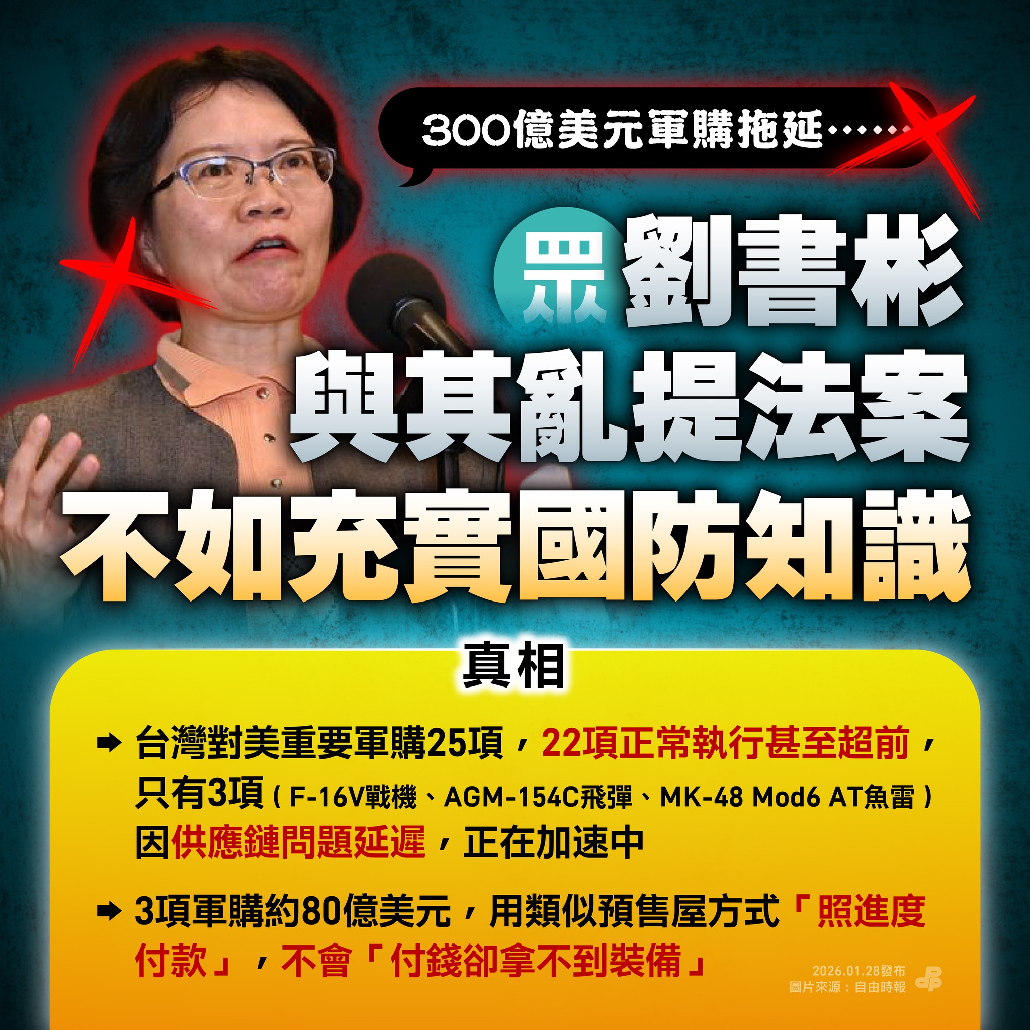 我們想請教民眾黨:由劉書彬參與研擬的「民眾黨版國防特別預算條例」,問題一籮筐,更完全不符合軍事採購實務,你們真的放心嗎?