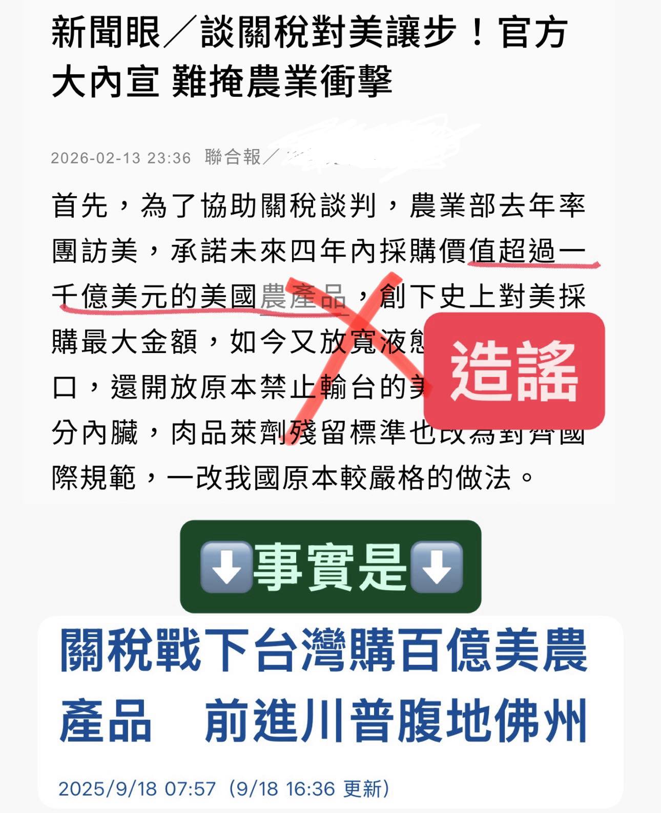 評論應該建立在「事實」與「常識」之上。台灣一年自美國進口的農產品金額原本就超過37億美元,農業採購是為了確保台灣的糧食安全與物價穩定,黃豆、小麥、玉米本來就依賴進口,現在民間業者爭取有利價格,卻被有心媒體拿來當作政治鬥爭的祭品。不要再用假新聞來踐踏台灣農業與經貿信用!