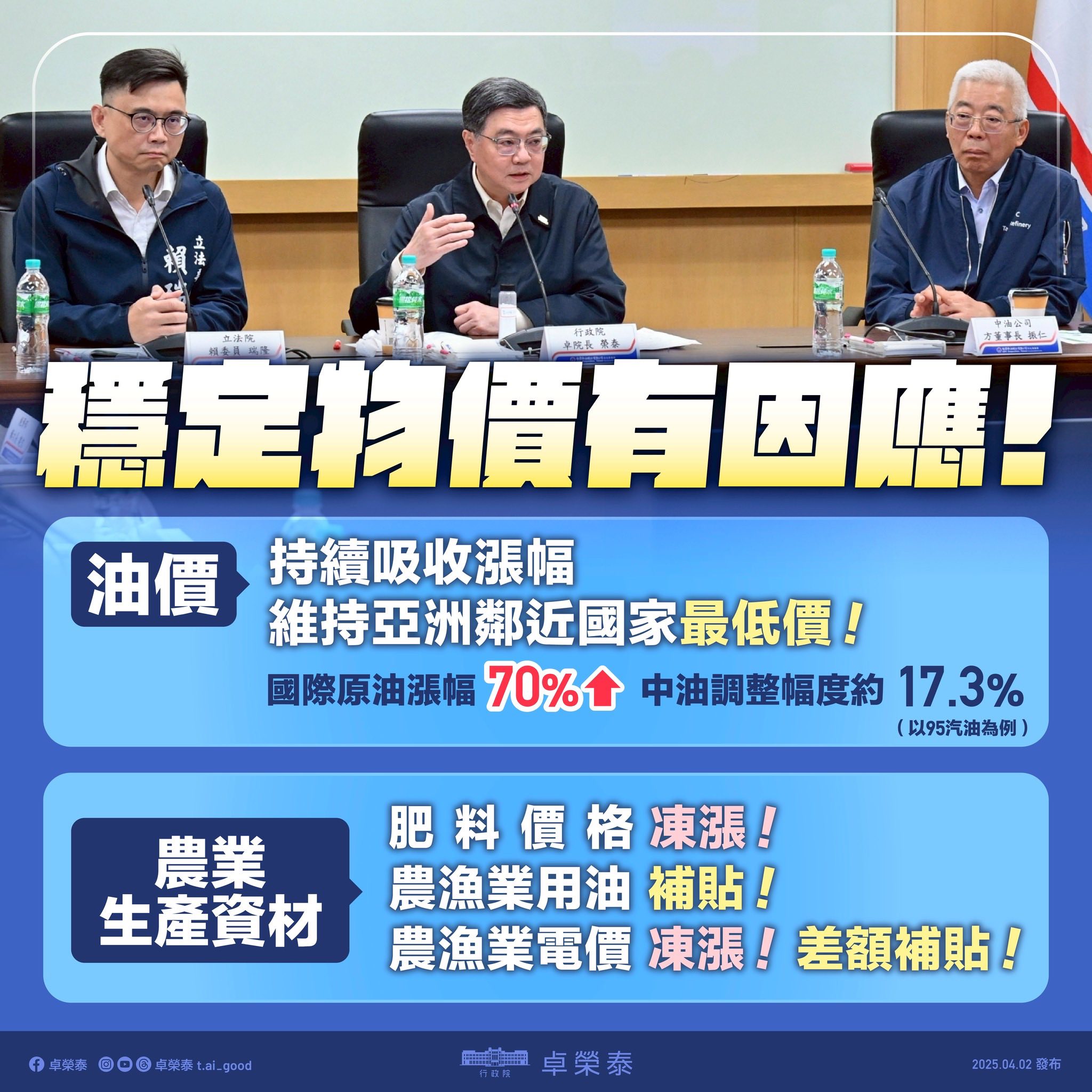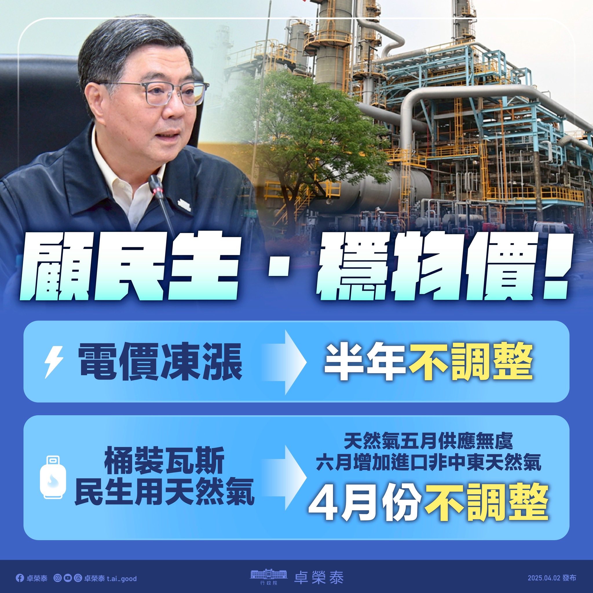 政府持續確保能源供應無虞、穩定民生物價、維持市場秩序