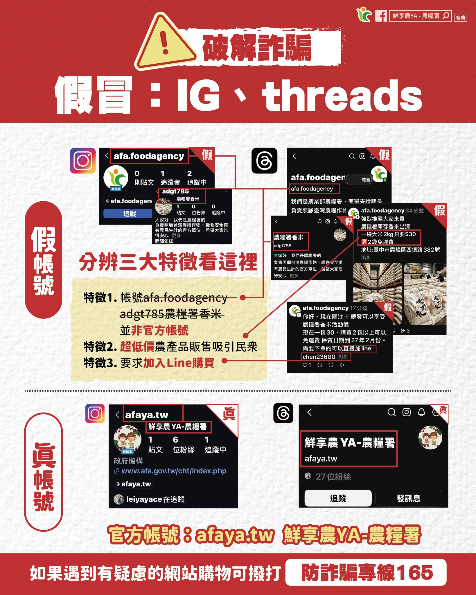 有可能是假粉專盜用威脅,不法人士擷取農糧署圖片,偽裝成用戶的粉專來詐騙