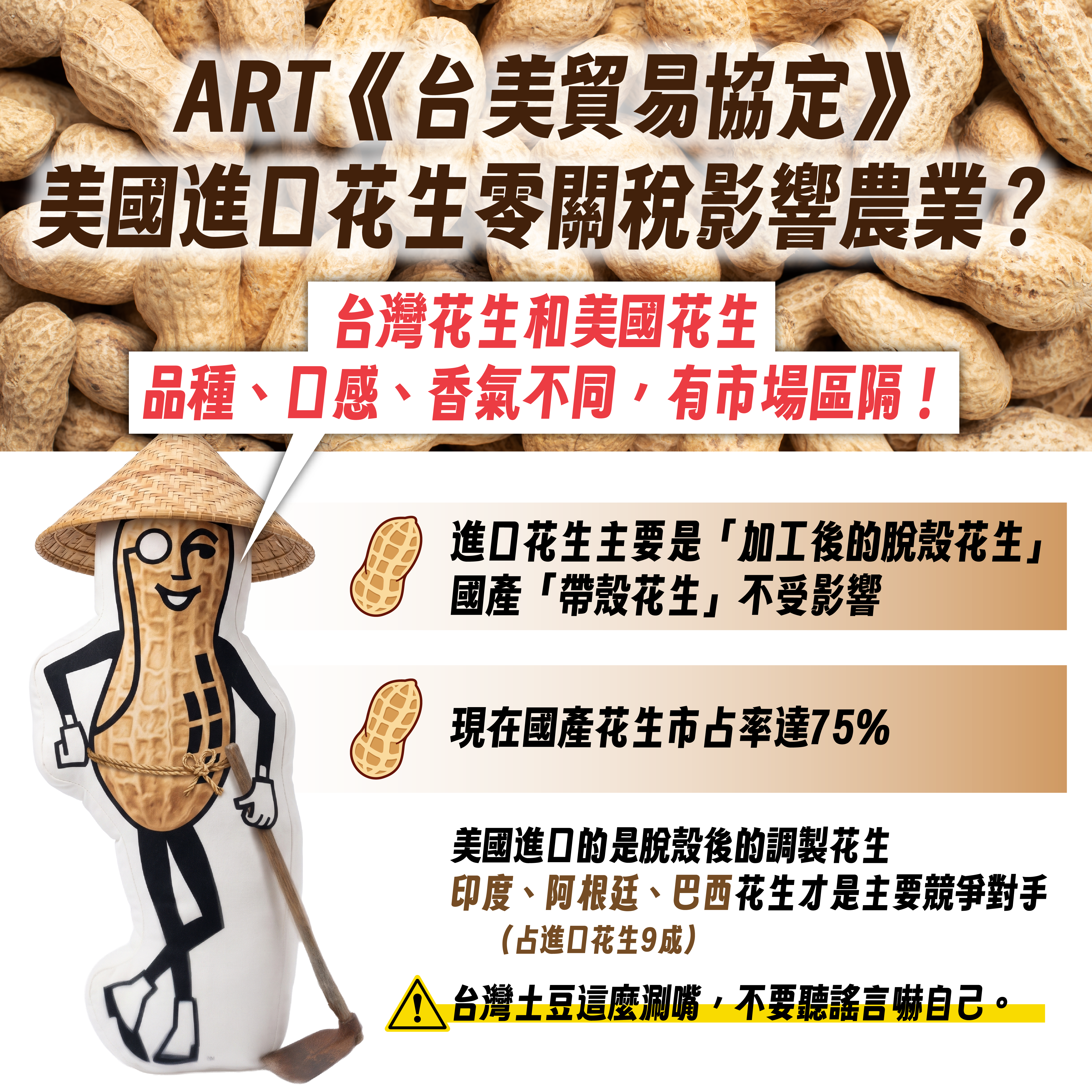 ❌網傳:台美貿易協定(ART)將重創台灣花生。