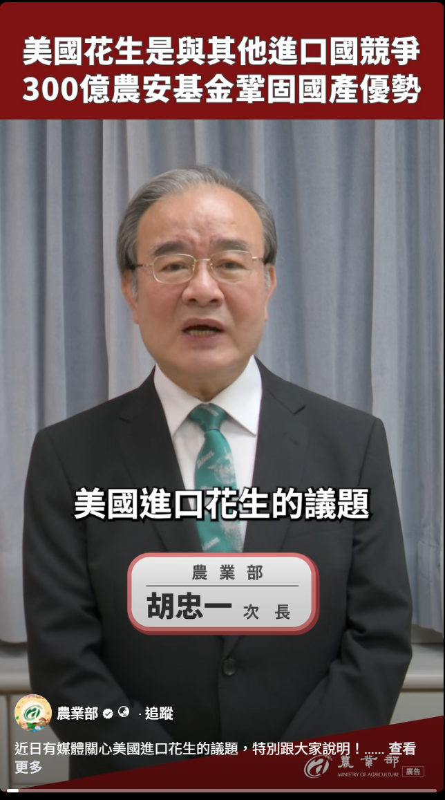 台灣花生好吃第一,請大家不用自己嚇自己。一起來看看農業部的說明👇