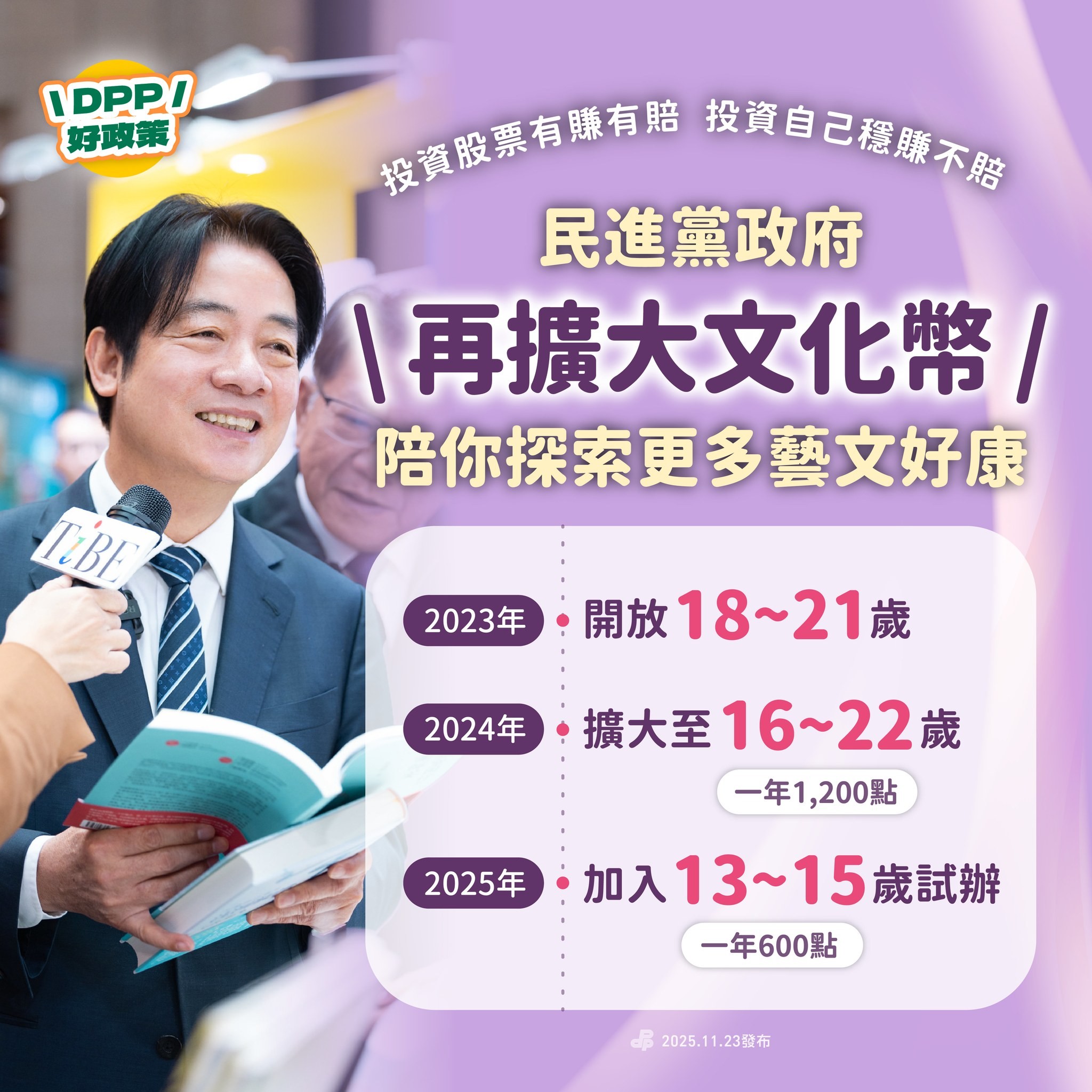 DPP好政策再一彈 文化幣持續擴大、深化!