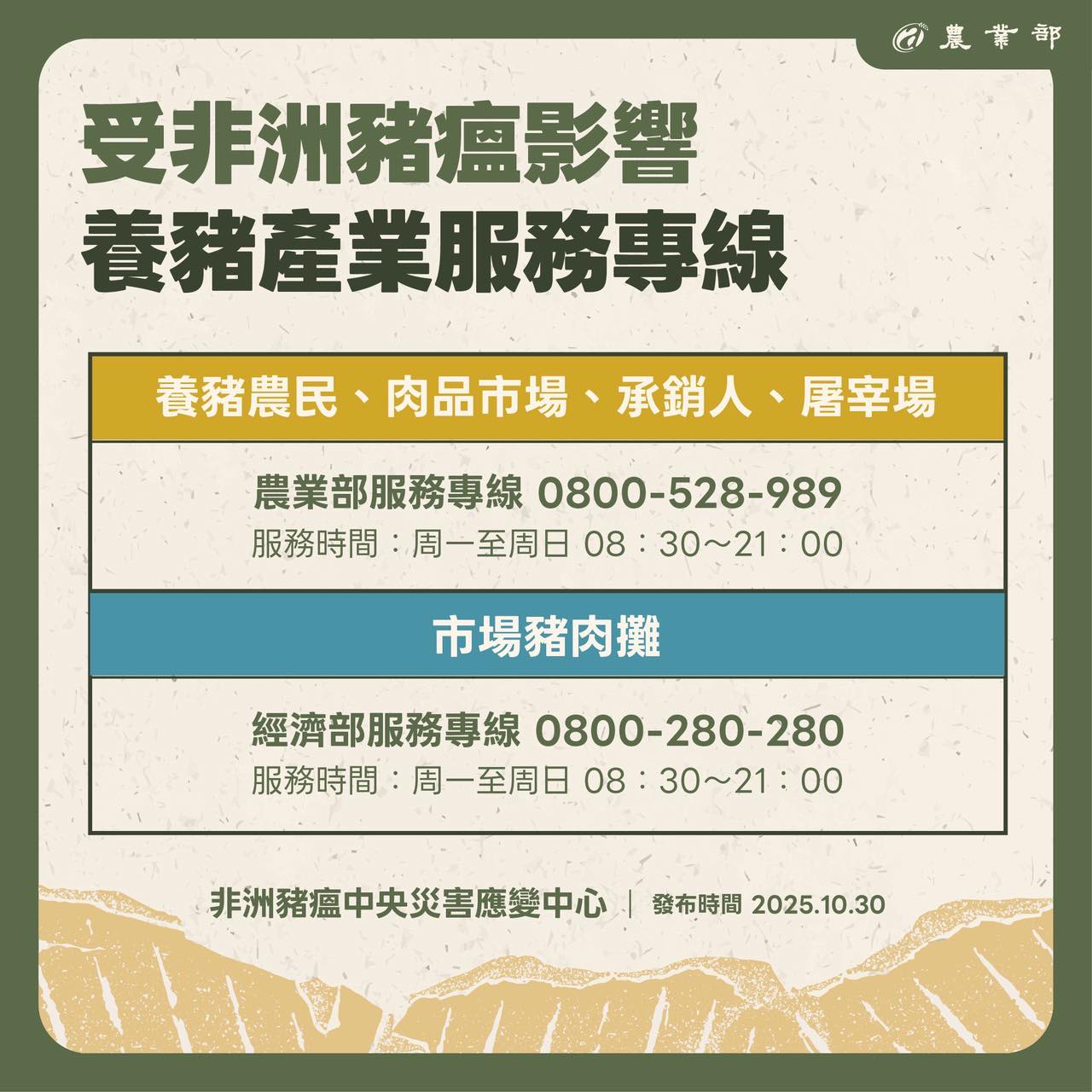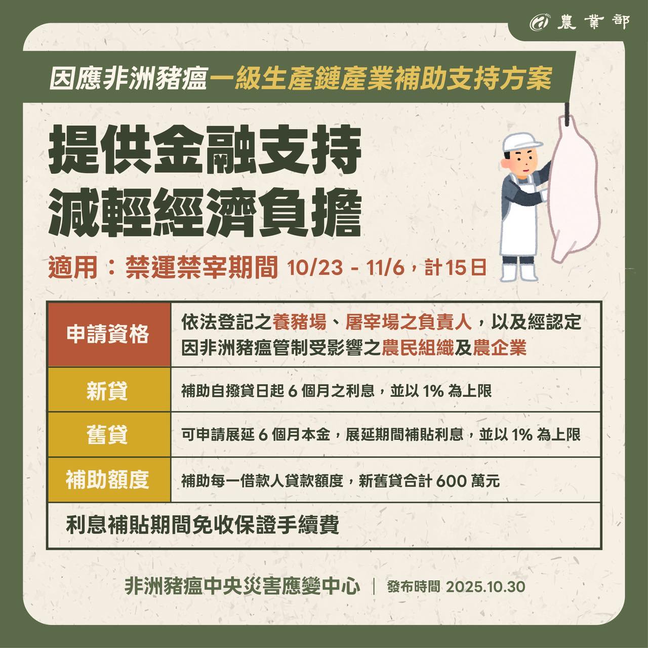 謝謝養豬一級產業鏈,共體時艱,配合政府從嚴防疫。
