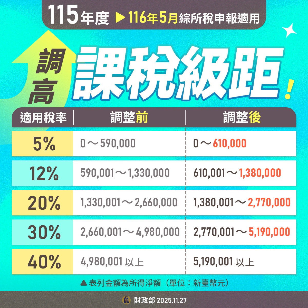 調高 #免稅額及扣除額 - 後(116)年申報 115 年度綜所稅適用