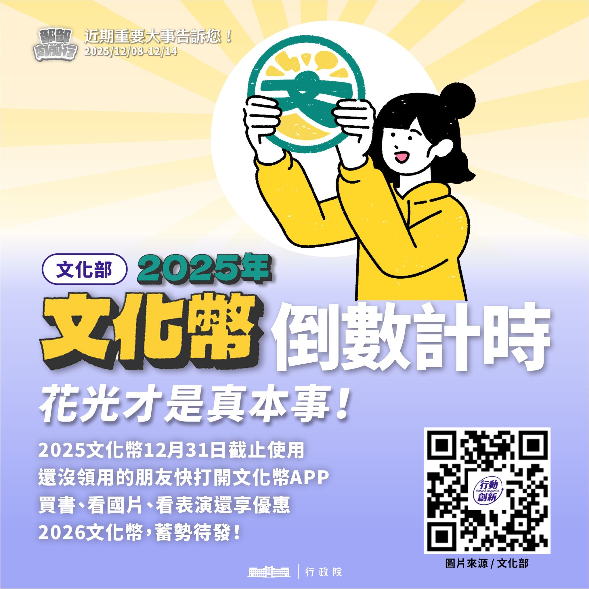 文化部:2025年文化幣12月31日截止使用,可買書、看國片、看表演還享優惠。