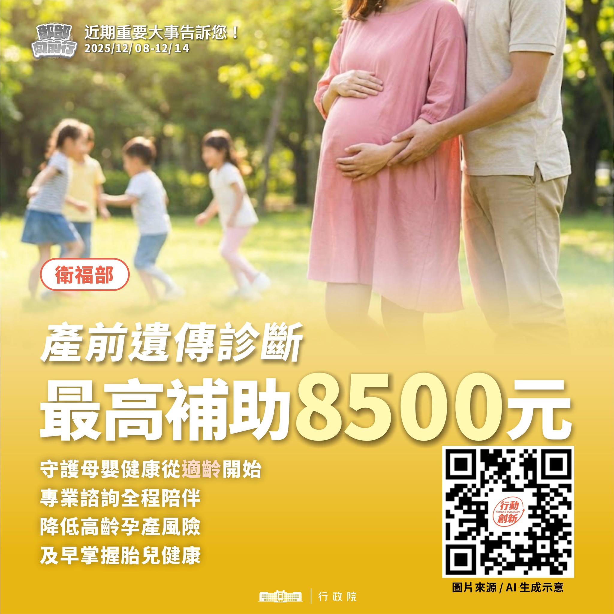 衛福部:守護母嬰健康從「適齡」開始,產前遺傳診斷最高補助8,500元。