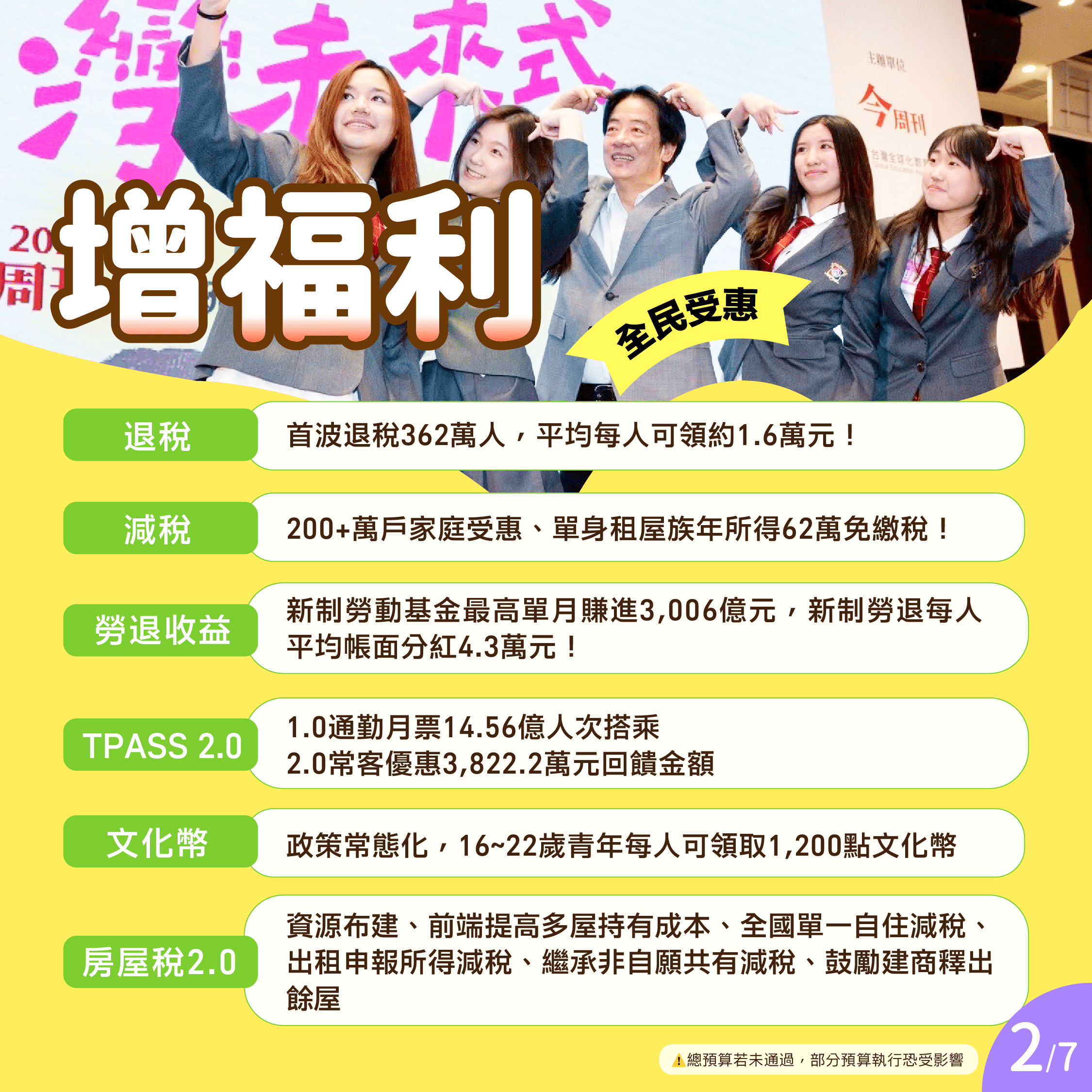 但也提醒大家:2026年的 #總預算 如果沒通過,以上政績不一定可以延續下去喔!