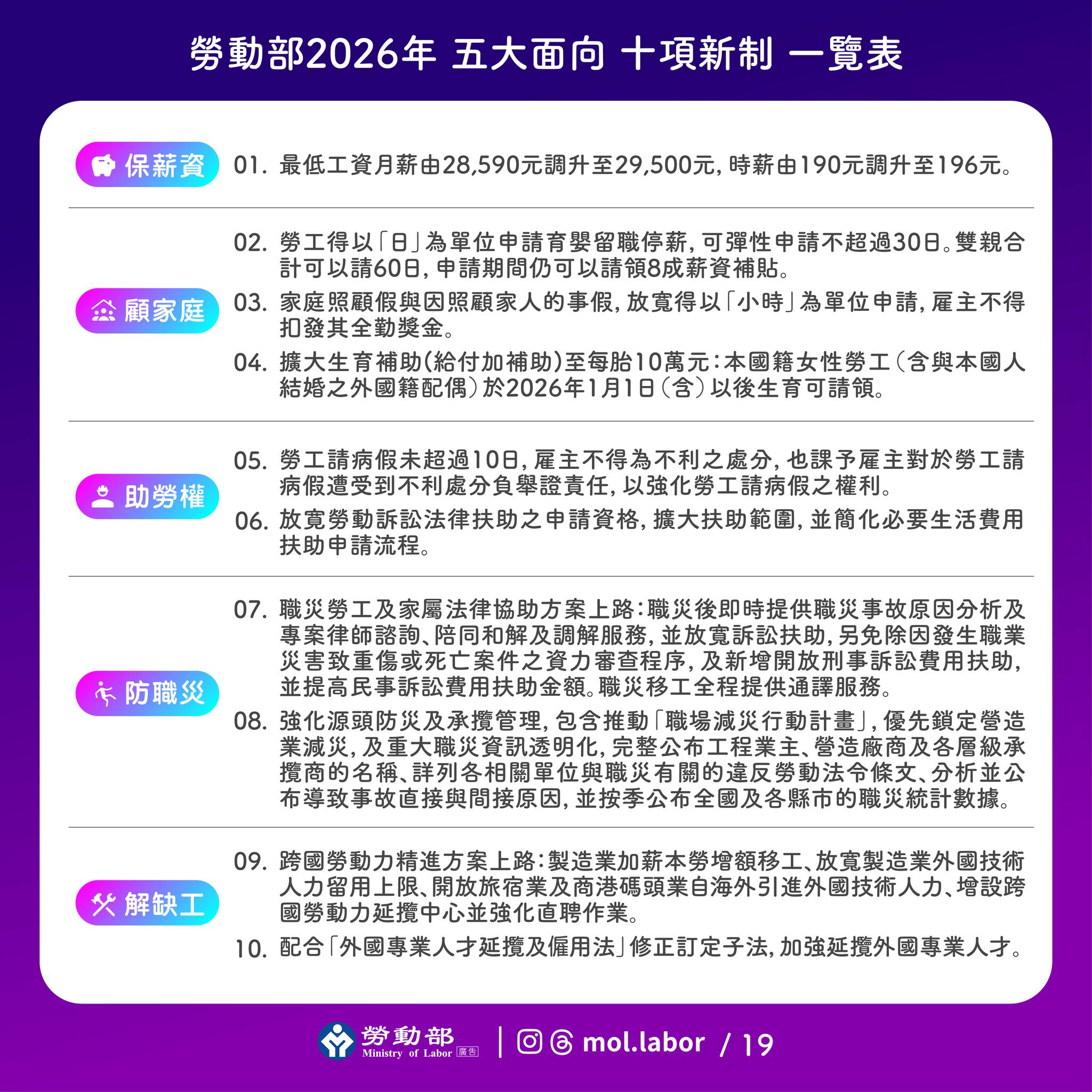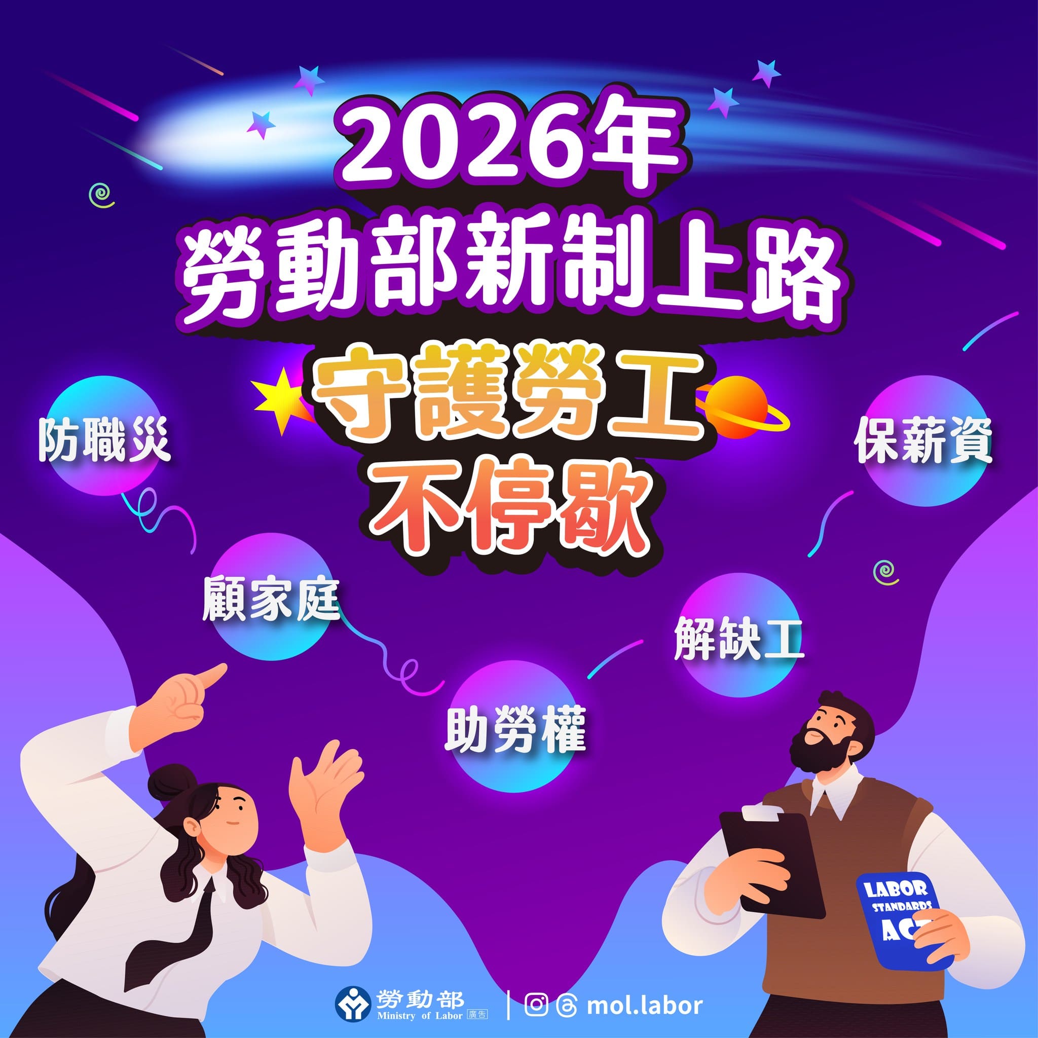 【保薪資、顧家庭、助勞權、防職災、解缺工】 2026年勞動新制上路,守護勞工不停歇!
