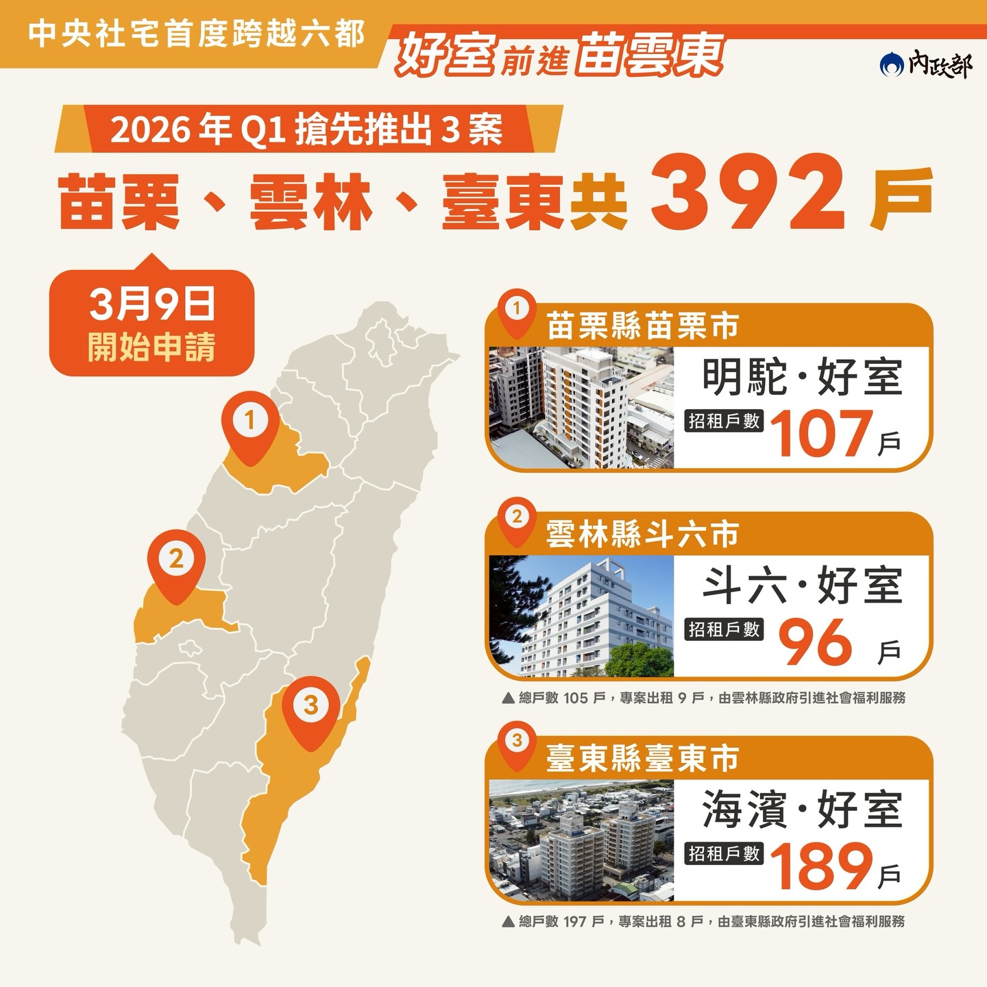 2026年第1季,中央首度在六都以外縣市推出新建社宅——