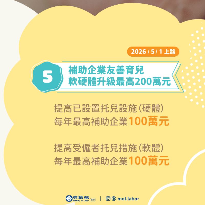勞動部 #強化企業托育方案 5大亮點全新升級